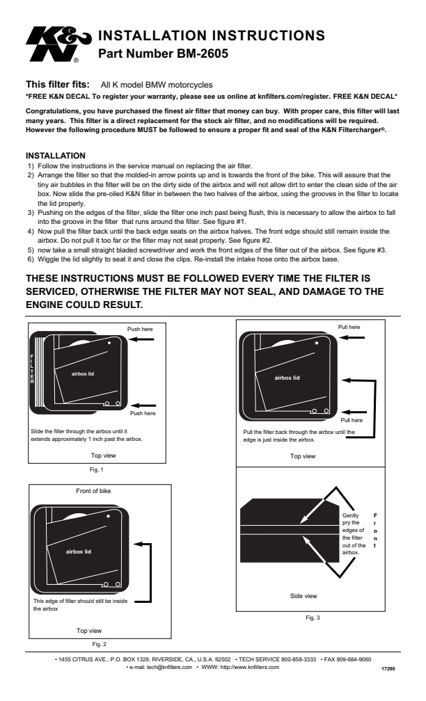 K&N's high-flow air filters are available as a replacement for your stock motorcycle air filter element. They are custom engineered to fit your specific application and are designed to provide low restriction and increased performance, while providing excellent engine protection for your motorcycle.